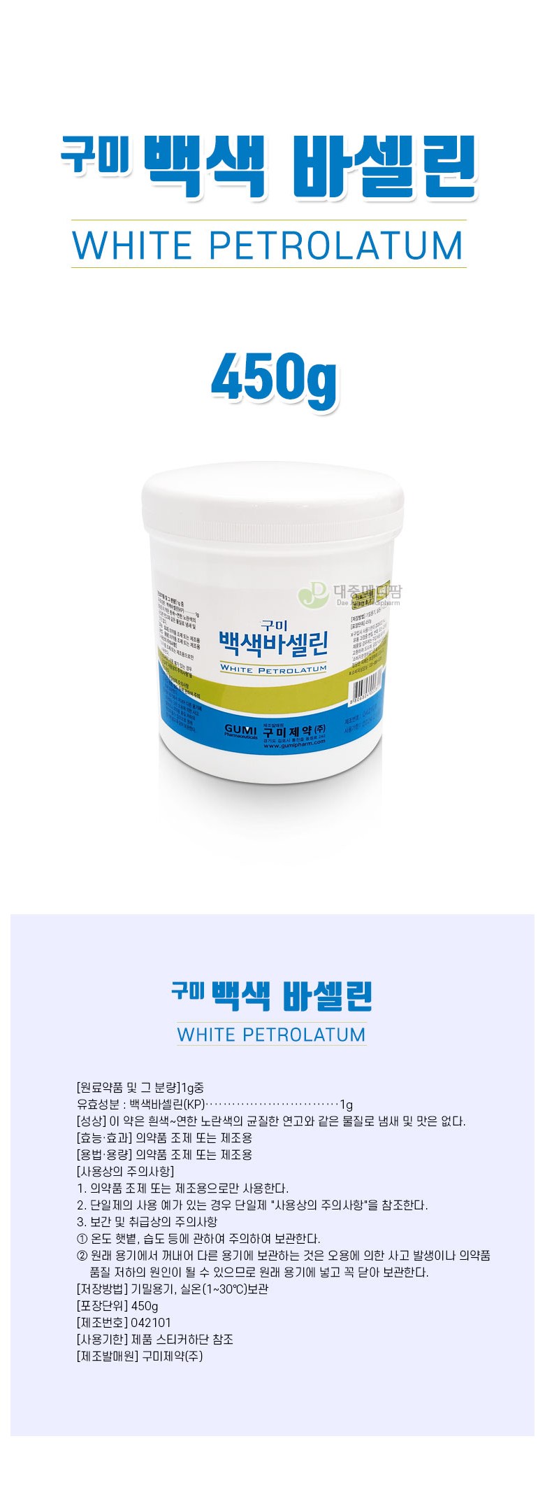 | 품명 및 모델명 | 구미 바셀린 450g | 인증/허가 사항 | 상세페이지 참조 |