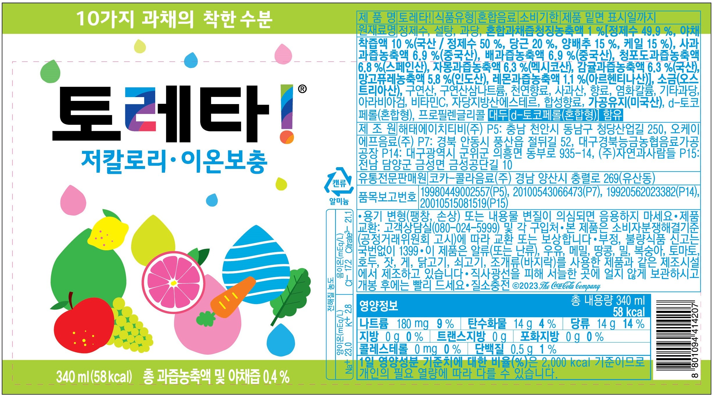 - 음료수 종류: 과일/야채음료