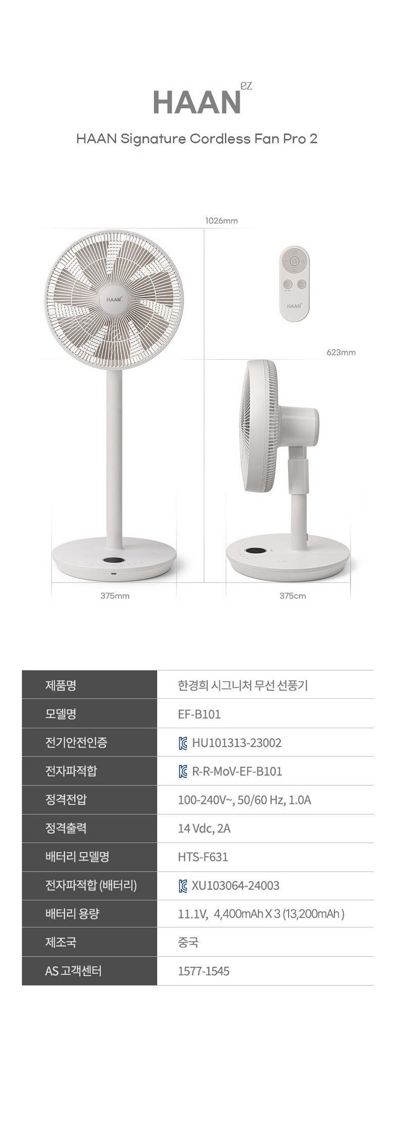 | 품명 및 모델명 | 한경희 무선 BLDC 선풍기 EF-B101 | KC 인증정보 | HU101313-23002 |