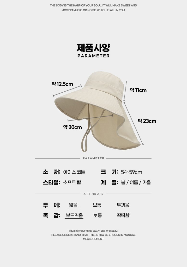 | 품명 및 모델명 | 스멜모리 와이드 여름썬캡모자 | 인증/허가 사항 | 상품 상세페이지 참조 |