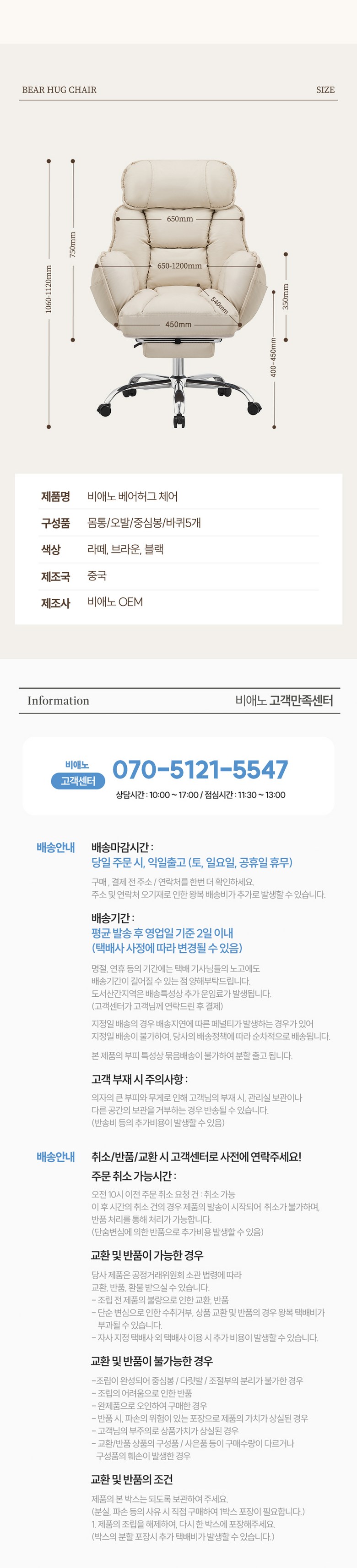 | 품명 | 비애노 베어허그 리클라이너 컴퓨터 의자 책상 | KC 인증정보 | 해당사항 없음 |