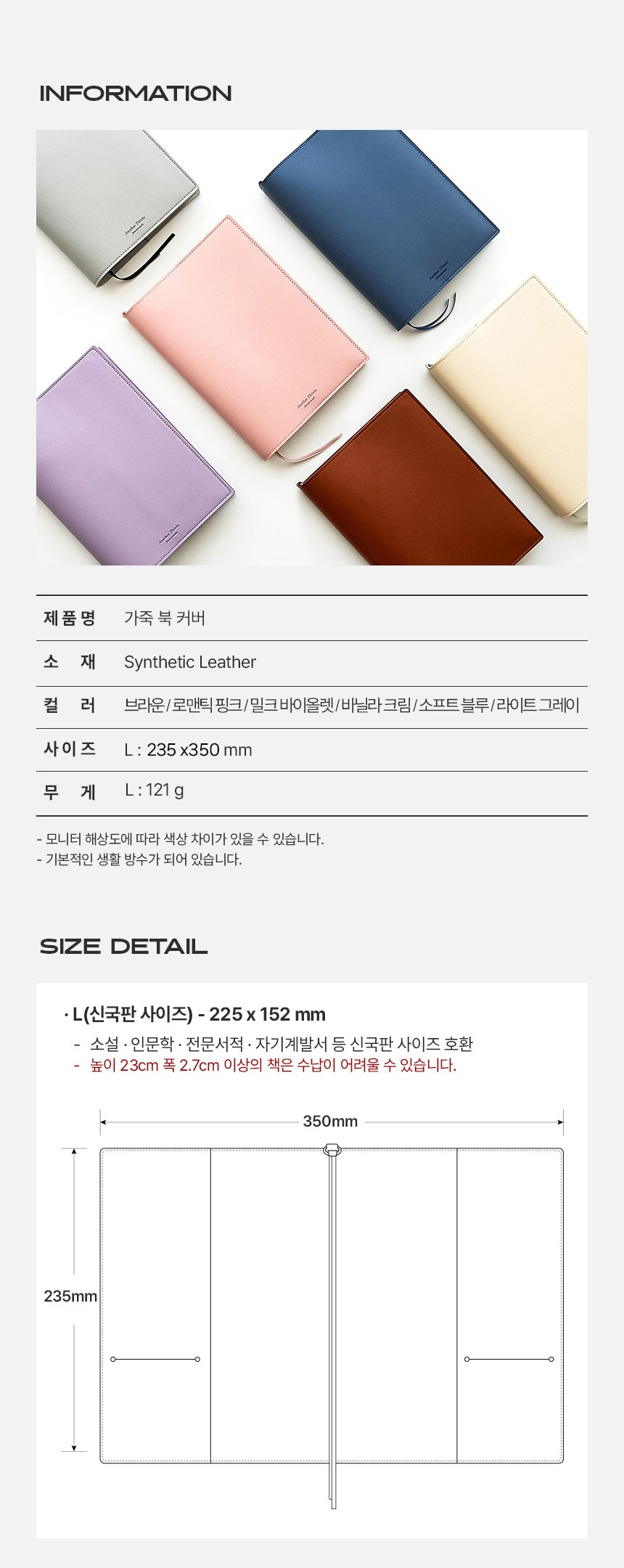 | 품명 및 모델명 | 가름끈 가죽 카드수납 책커버 북커버 L_브라운 | 인증/허가 사항 | 해당없음 |