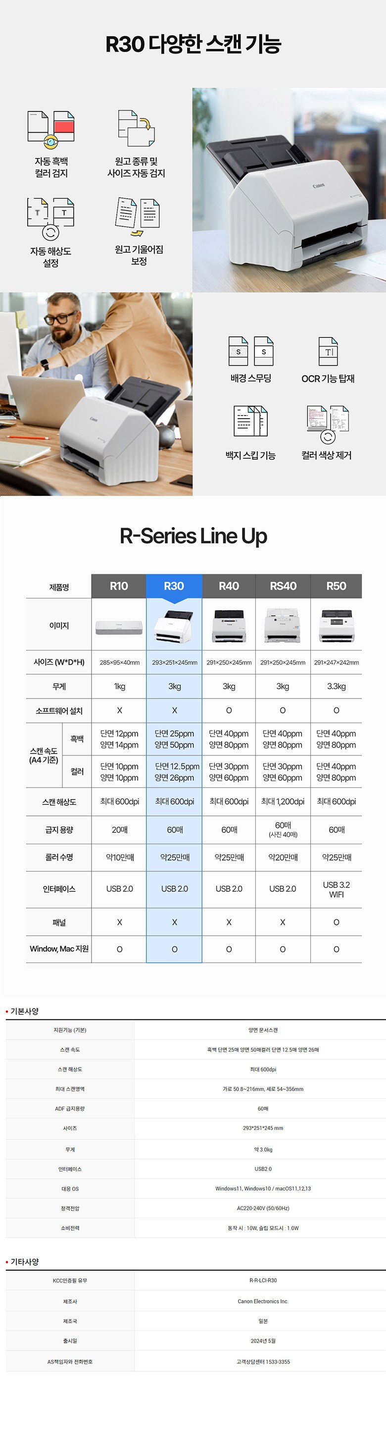 | 품명 및 모델명 | 캐논 고속스캐너 문서스캐너/ R30 | KC 인증정보 | 유/KC마크,R-R-LCI-R30 |