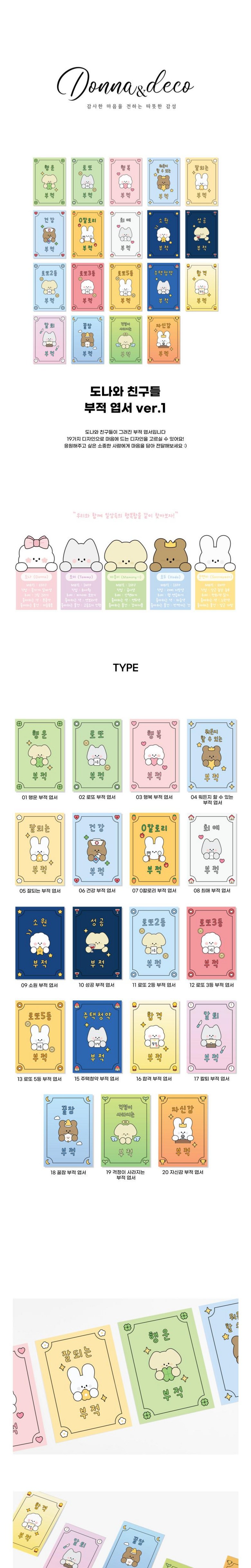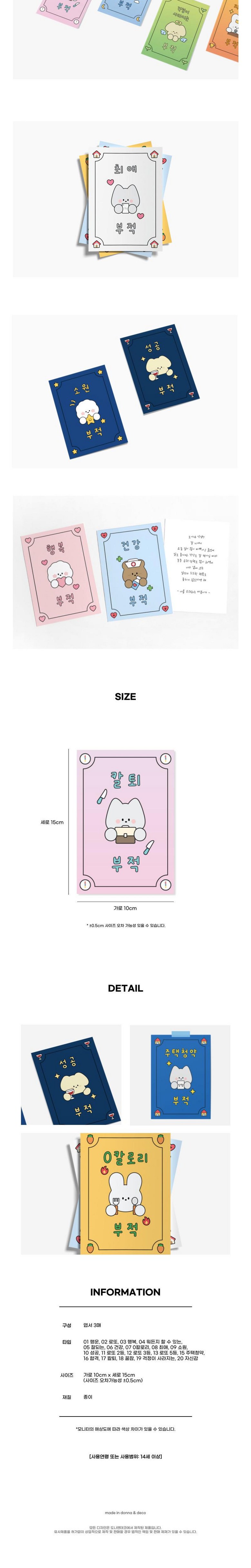 | 품명 및 모델명 | 도나와친구들 부적 엽서 | 인증/허가 사항 | 해당없음 |