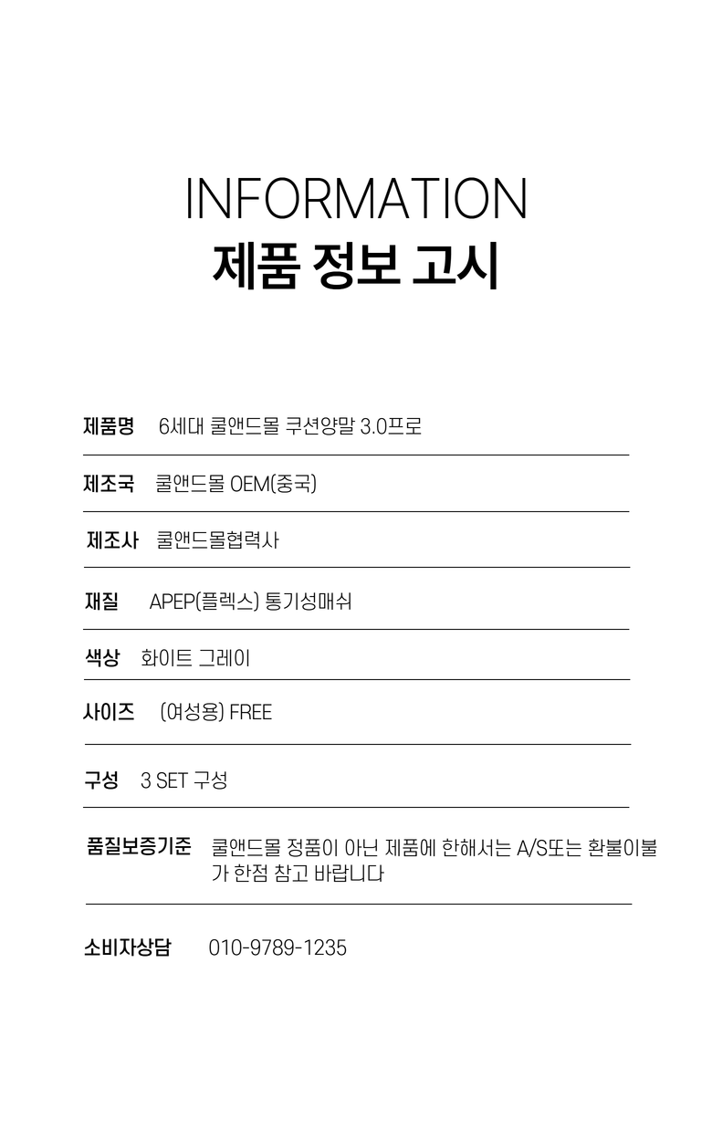 | 소비자상담 및 교환반품 문의 | 쿠팡고객센터 1577-7011 배송 및 환불/교환에 대한 문의는 마이쿠팡-고객센터 내 상담하기를 이용해주세요. | ||