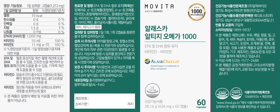 | 제품명 | 알래스카 알티지 오메가 1000 | 제조업소의 명칭과 소재지 | 컨텐츠 참조 |