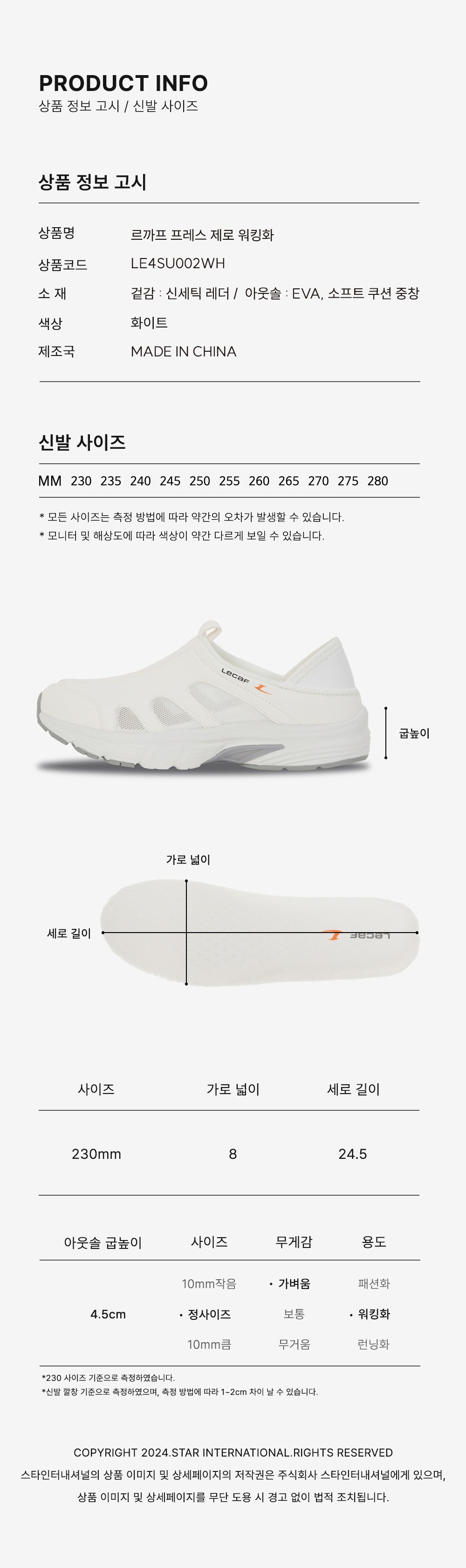 | 치수 | 230~235mm | 제조자(수입자) | 업체미제공 / (주)스타인터내셔널 |