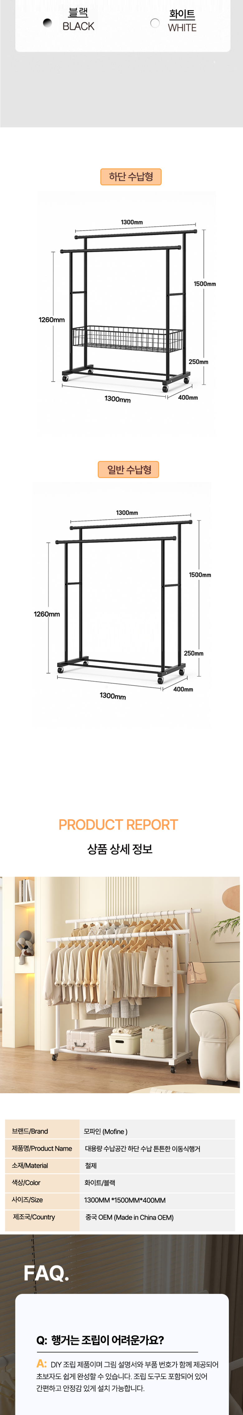 | 품명 | 모파인 2단 이동식행거 업그레이드 대용량 수납공간 하단 수납 튼튼한 이동식행거 | KC 인증정보 | 해당없음 |
