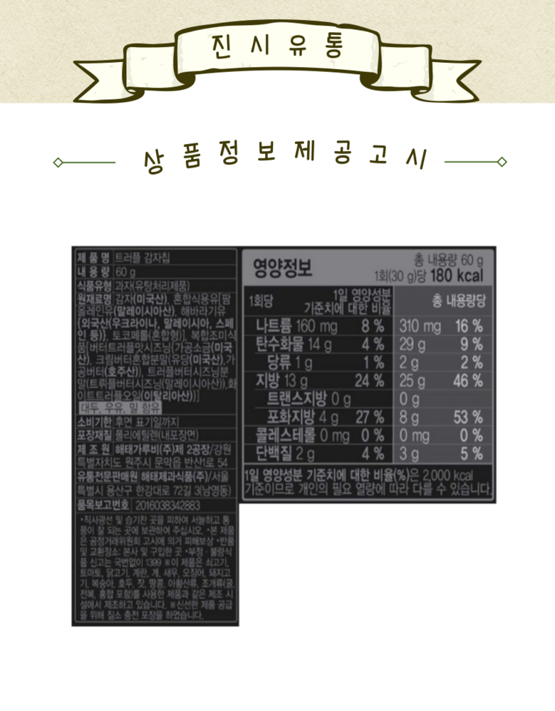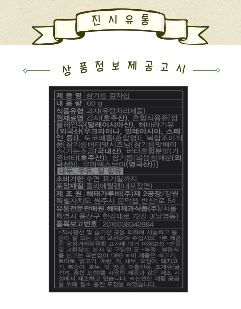| 제조연월일, 소비기한 또는 품질유지기한 | 상품 상세페이지 참조 | 세부 품목군별 표시사항 | 상품 상세페이지 참조 |