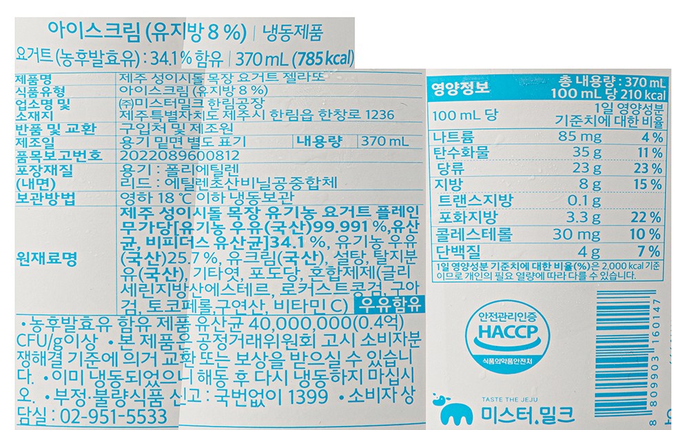| 제품명 | 제주 성이시돌 목장 요거트 젤라또 | 식품의 유형 | 컨텐츠 참조 |