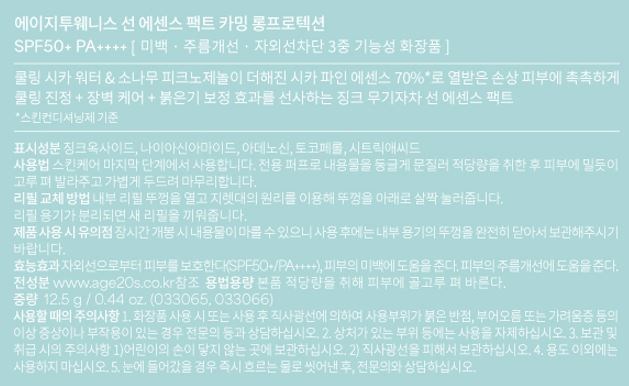 [비건뷰티] 에이지투웨니스 선 에센스 팩트 카밍 롱프로텍션 SPF50+ PA++++, 12.5g, 1개