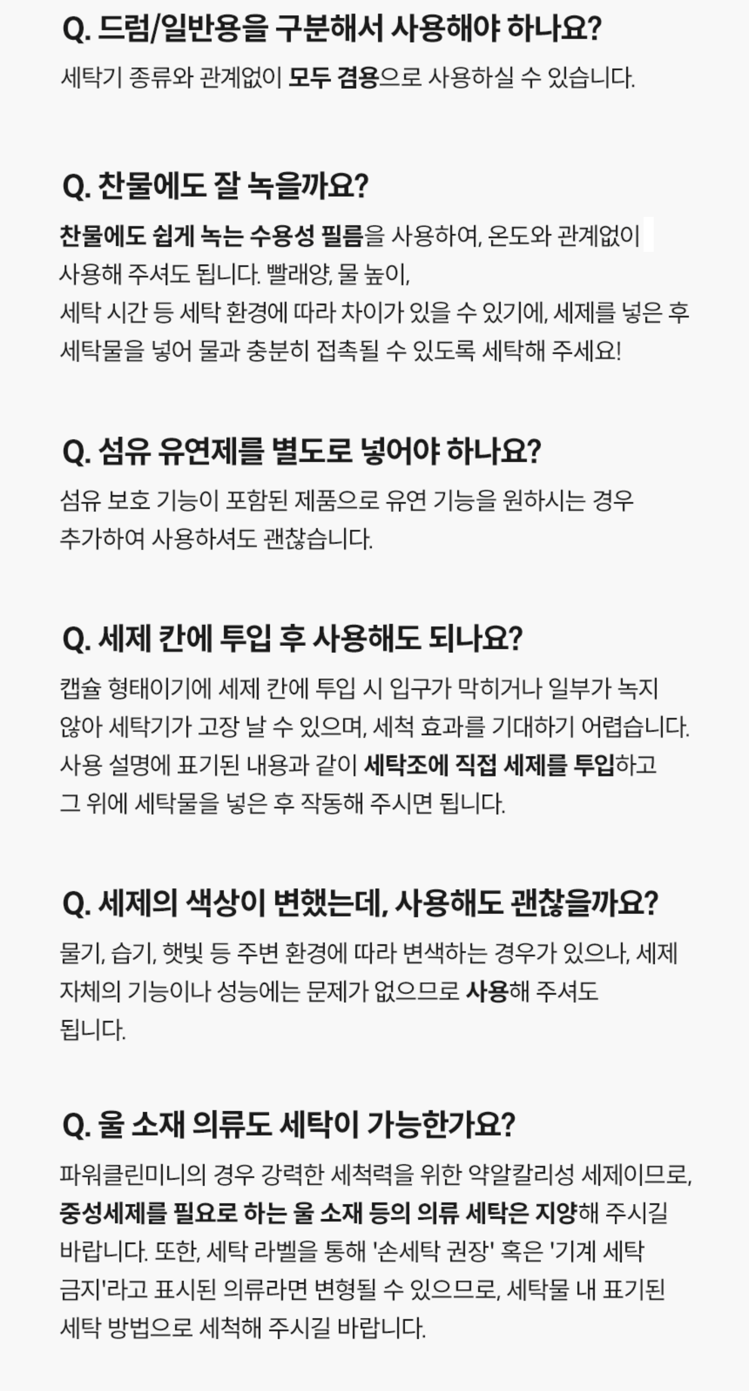 - 종류: 일반/드럼공용세제