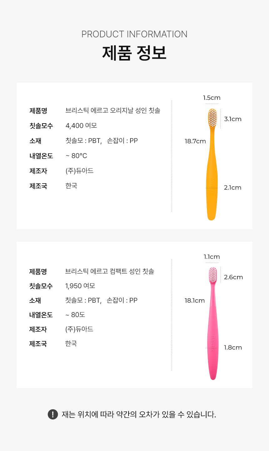 | 품명 및 모델명 | 브리스틱 에르고 컴팩트 칫솔 | 인증/허가 사항 | 해당없음 |