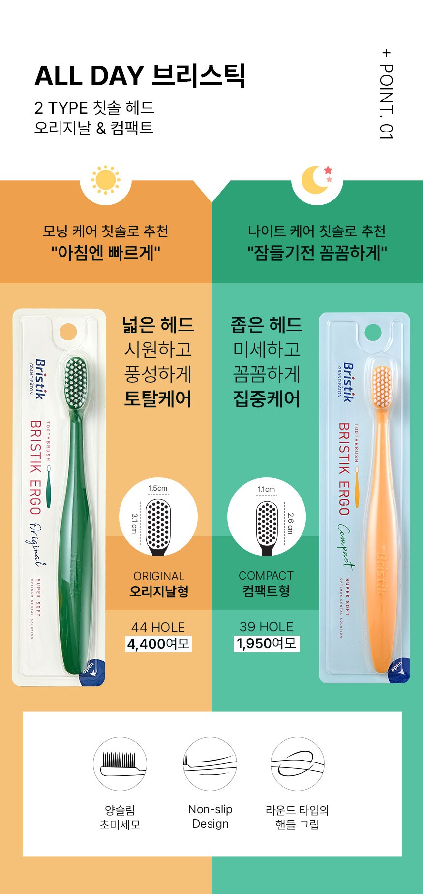 브리스틱 에르고 컴팩트 성인칫솔 5개입, 1세트