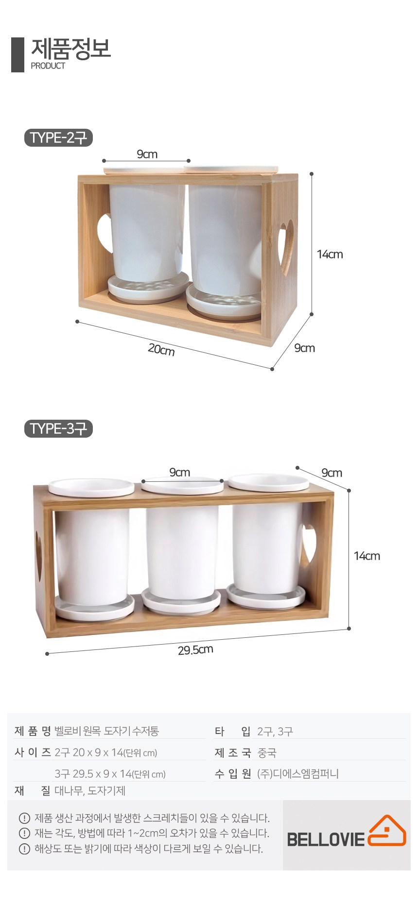 | 품명 및 모델명 | 벨로비 원목 3구 도자기 수저통 | 재질 | 컨텐츠참조 |