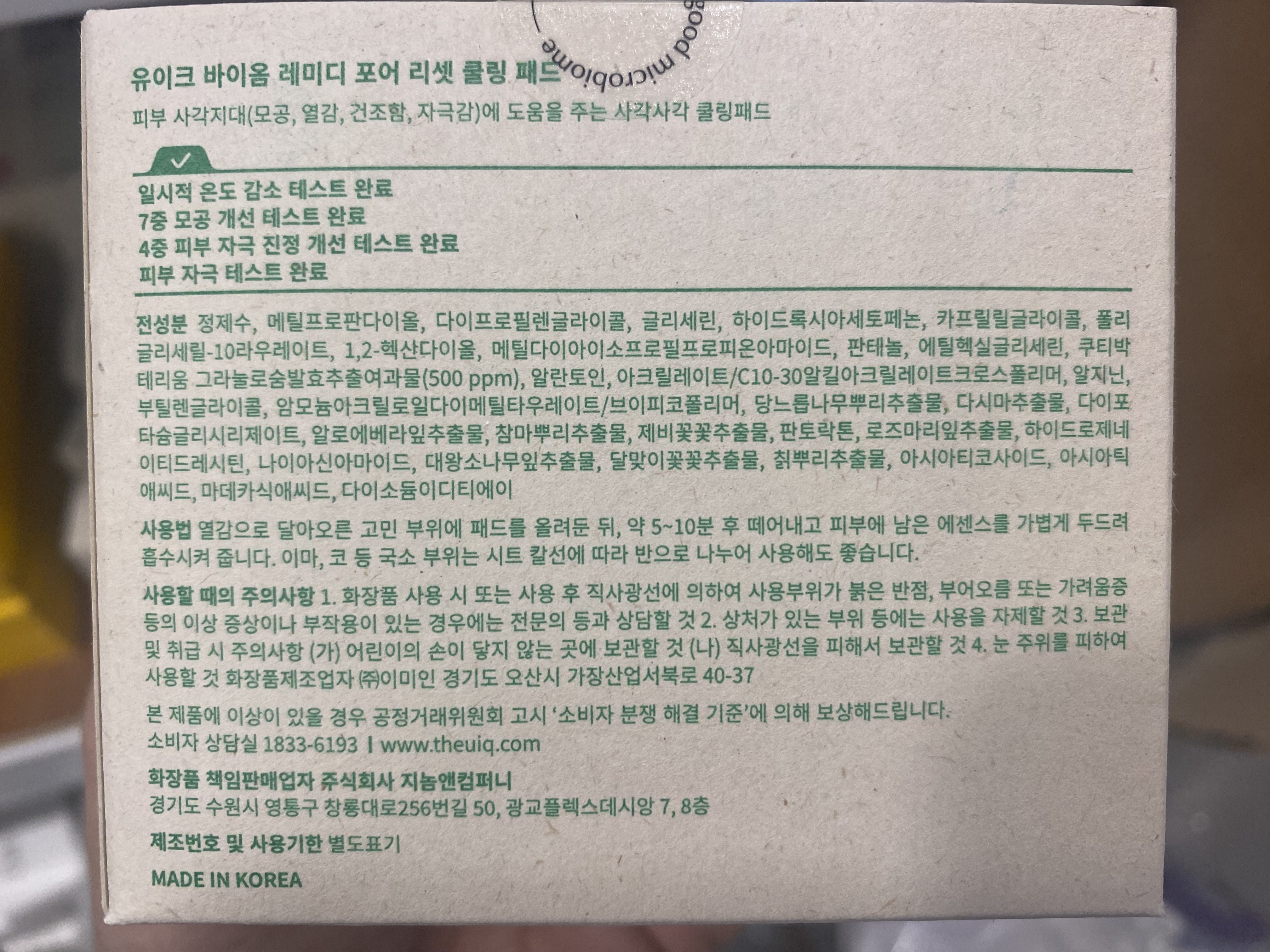 | 화장품제조업자, 화장품책임판매업자 및 맞춤형화장품판매업자 | 컨텐츠 참조 | 제조국 | 대한민국 |