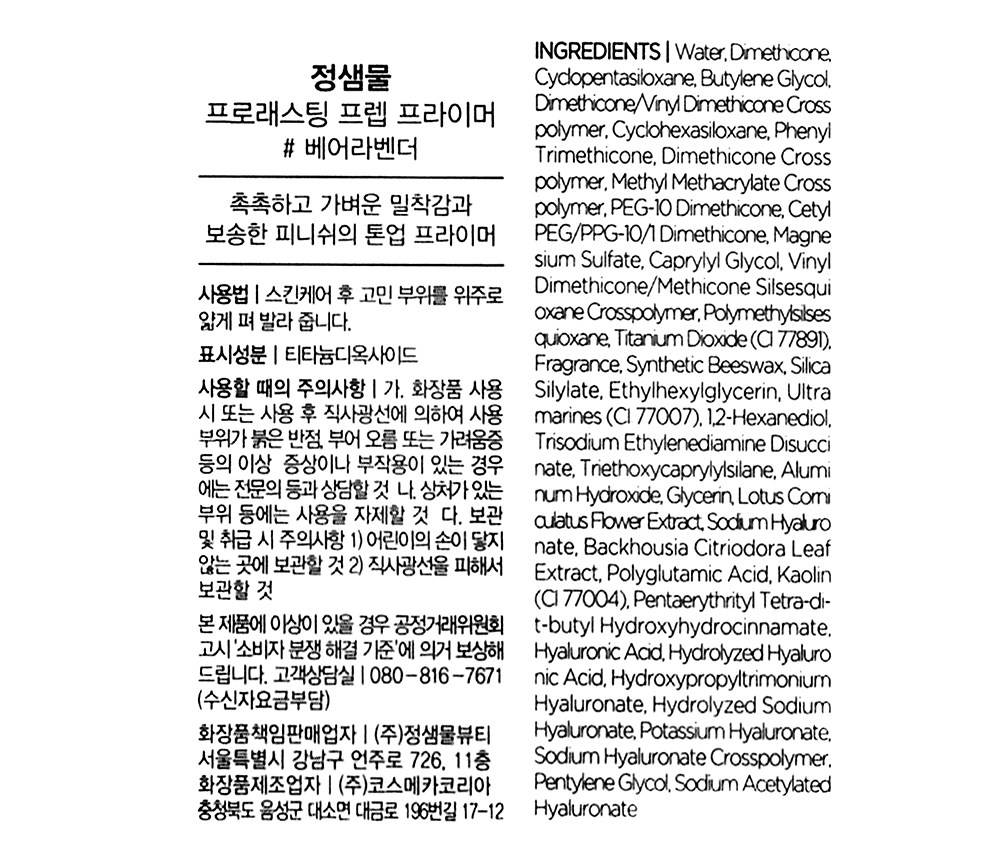 | 화장품제조업자, 화장품책임판매업자 및 맞춤형화장품판매업자 | 컨텐츠참조 | 제조국 | 한국 |