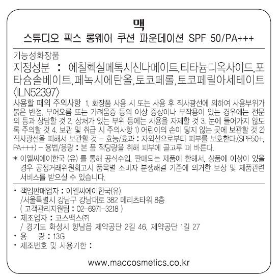 맥 스튜디오 픽스 롱웨어 쿠션 파운데이션 SPF 50 PA+++ 13g, NC30, 1개