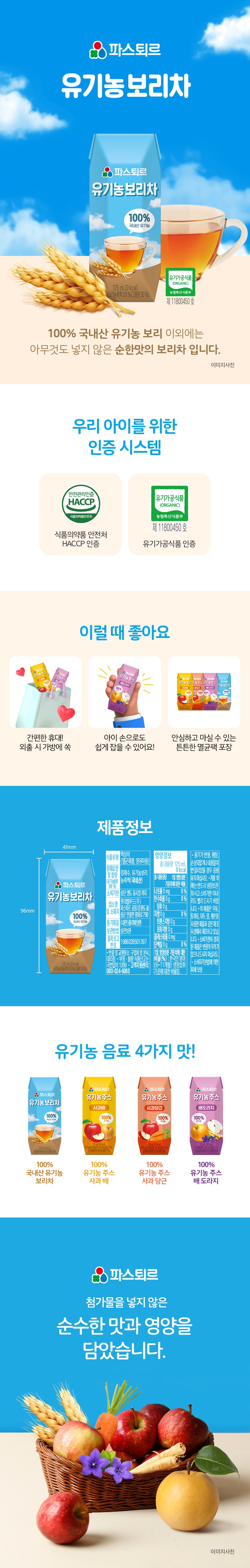 | 제품명 | 파스퇴르 유기농 보리차 | 식품의 유형 | 컨텐츠 참조 |