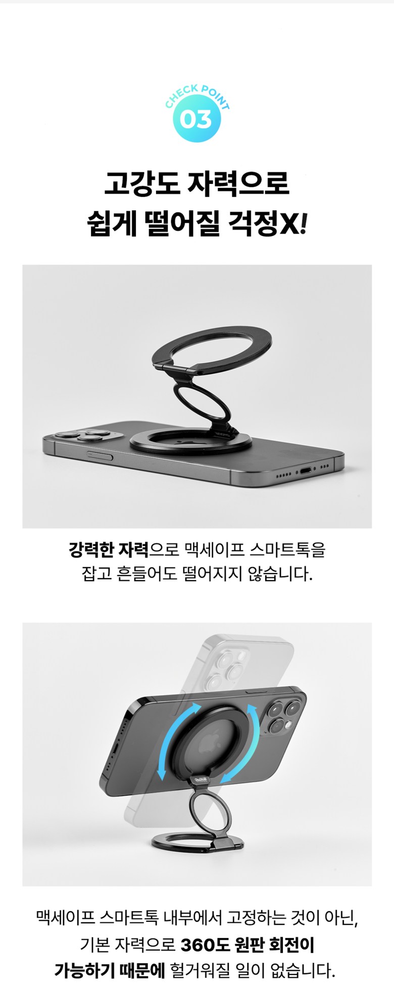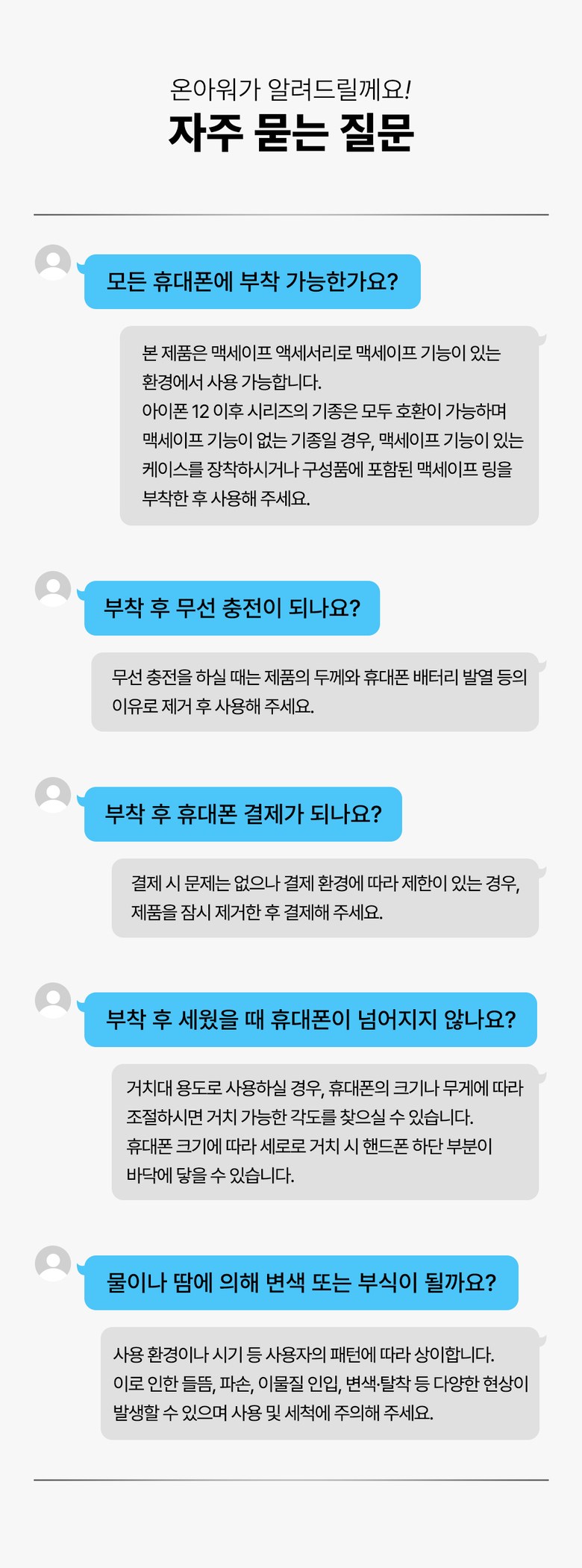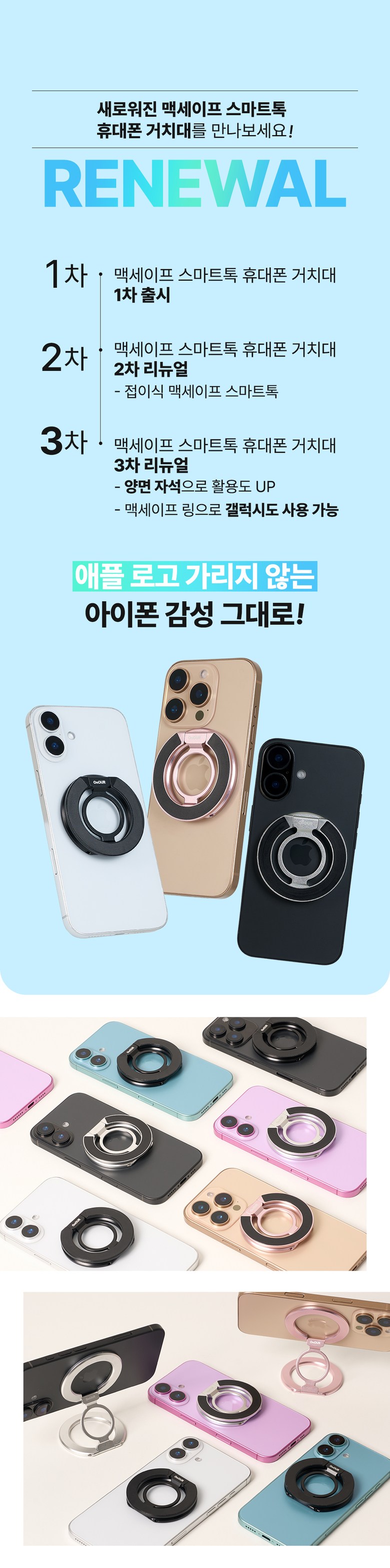 | 품명 및 모델명 | 온아워 맥세이프 그립 스마트톡 휴대폰 거치대 + 맥세이프링 3P | 인증/허가 사항 | 해당없음(14세 이상) |