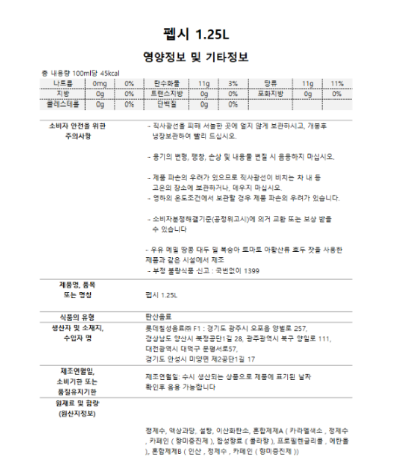 | 생산자 및 소재지 | 상품 상세페이지 참조 | 제조연월일, 소비기한 또는 품질유지기한 | 상품 상세페이지 참조 |
