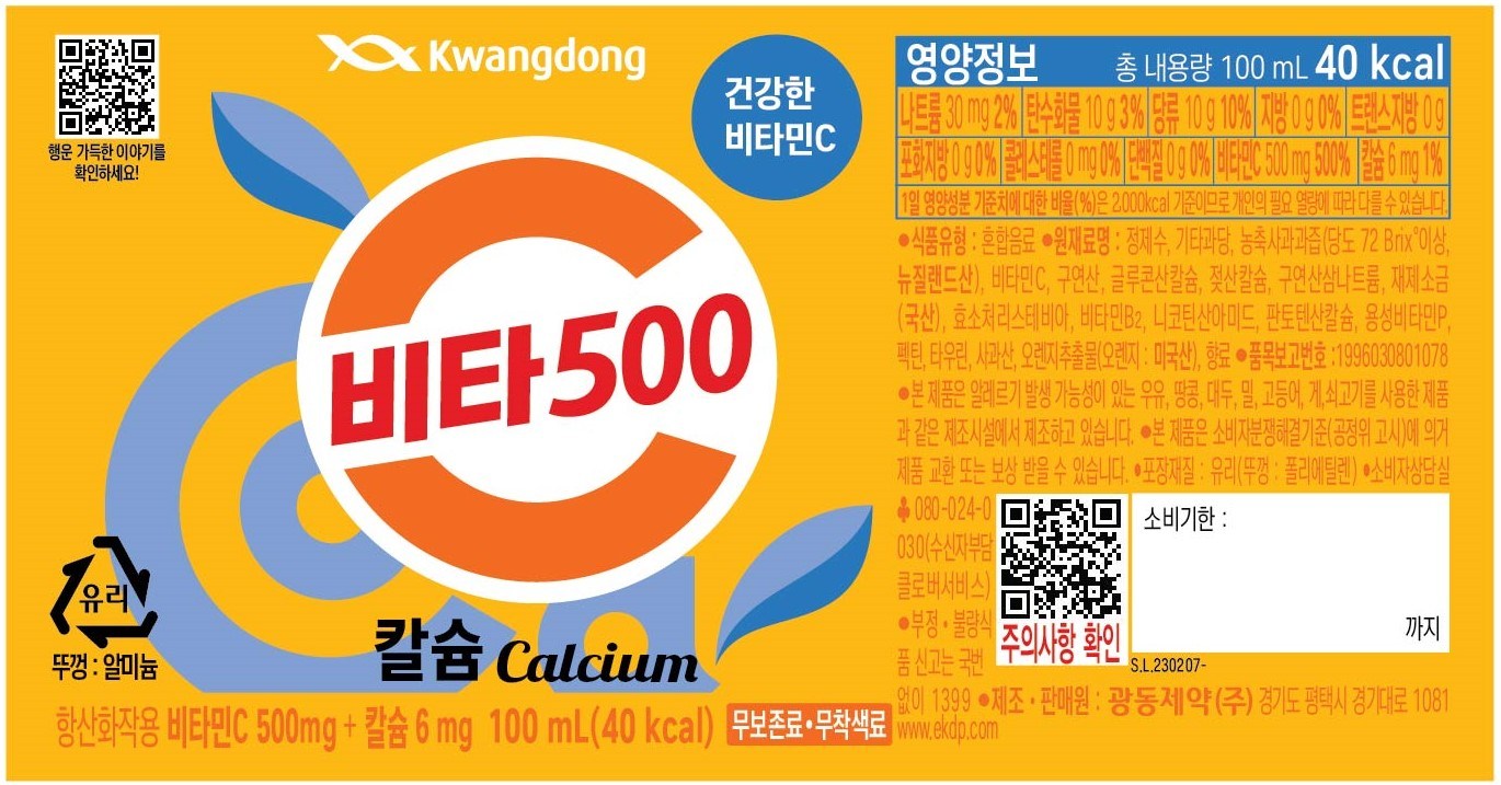 | 제품명 | 광동 비타500 칼슘 | 식품의 유형 | 컨텐츠참조 |