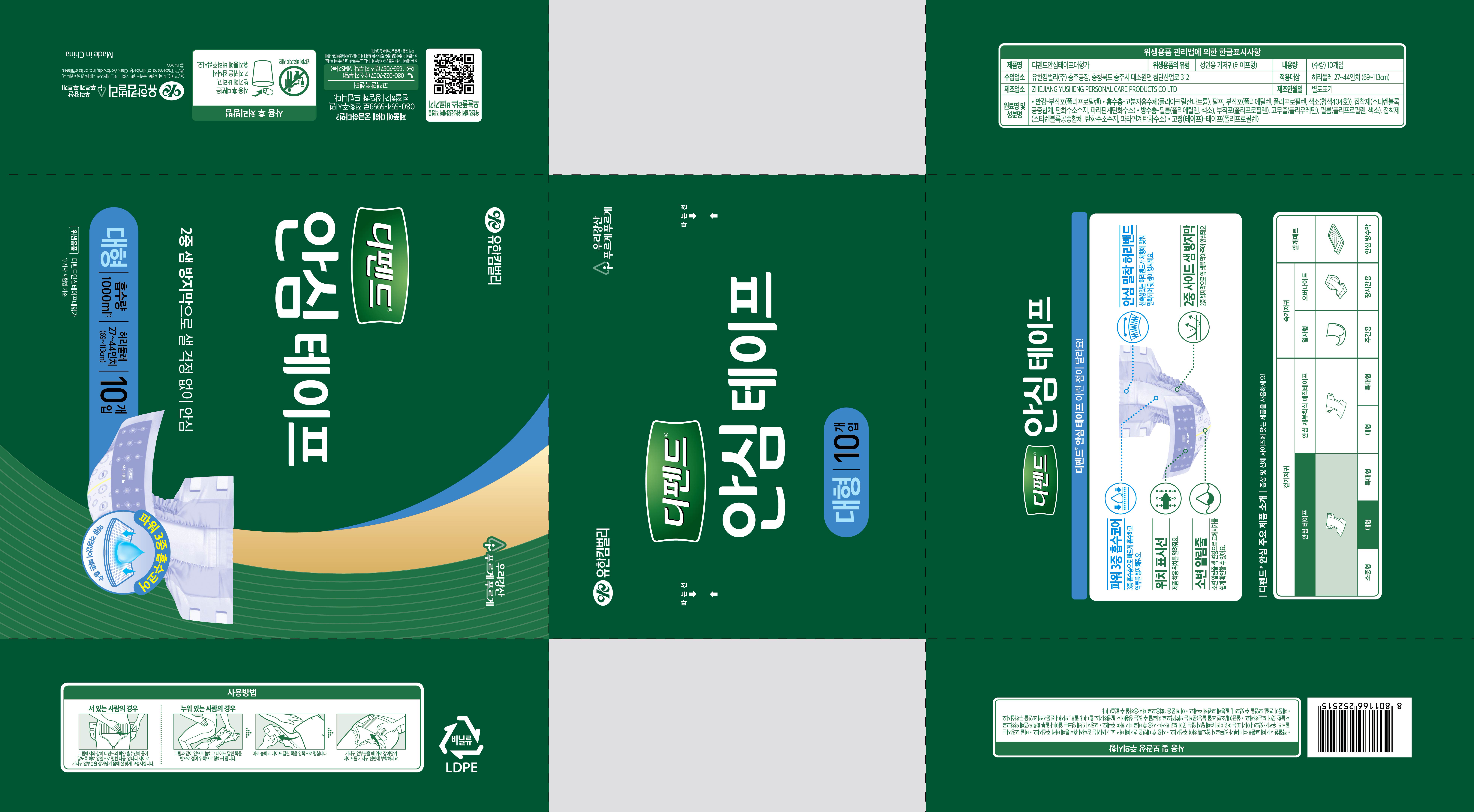 | 품명 및 모델명 | 리뉴얼 전: 디펜드 안심 테이프 대형, 리뉴얼 후: 디펜드안심테이프대형가 | 인증/허가 사항 | 위생용품 |
