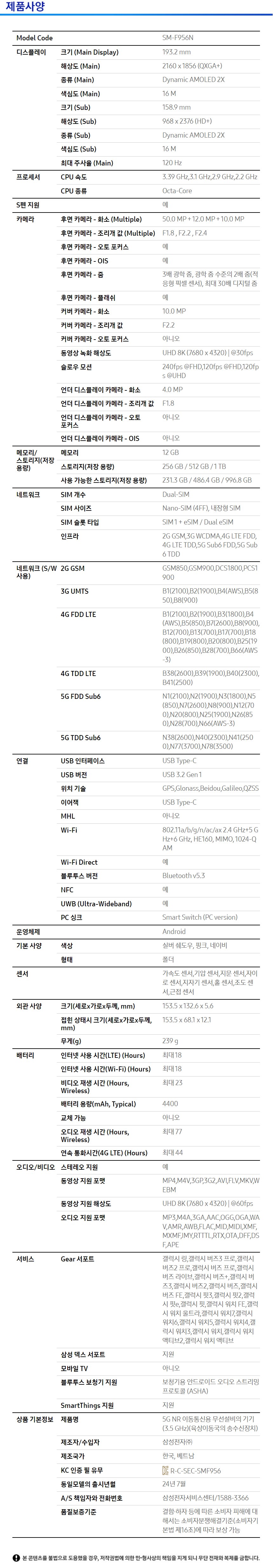 - 모델명/품번: SM-F956N