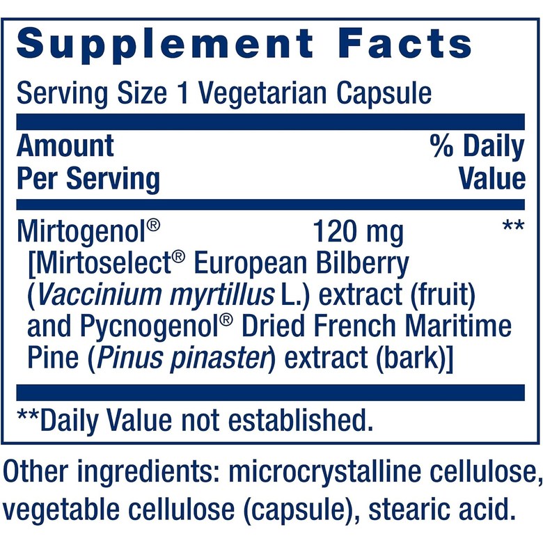 빌베리 추출물과 프랑스 해안 소나무 추출물을 블렌딩하여 만든 식이 보충제입니다. 1회 제공량 당 120mg을 제공합니다. 섭취 및 흡수가 용이한 베지 캡슐 형태로 제공됩니다.