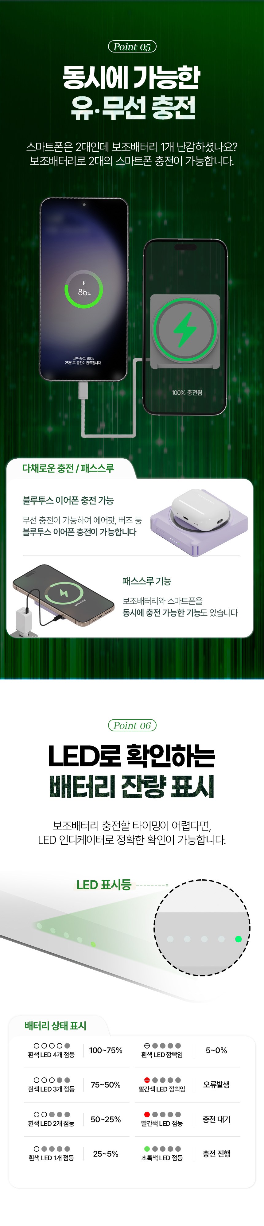 - 충전/잔량 표시 기능: 충전/잔량 표시 가능
