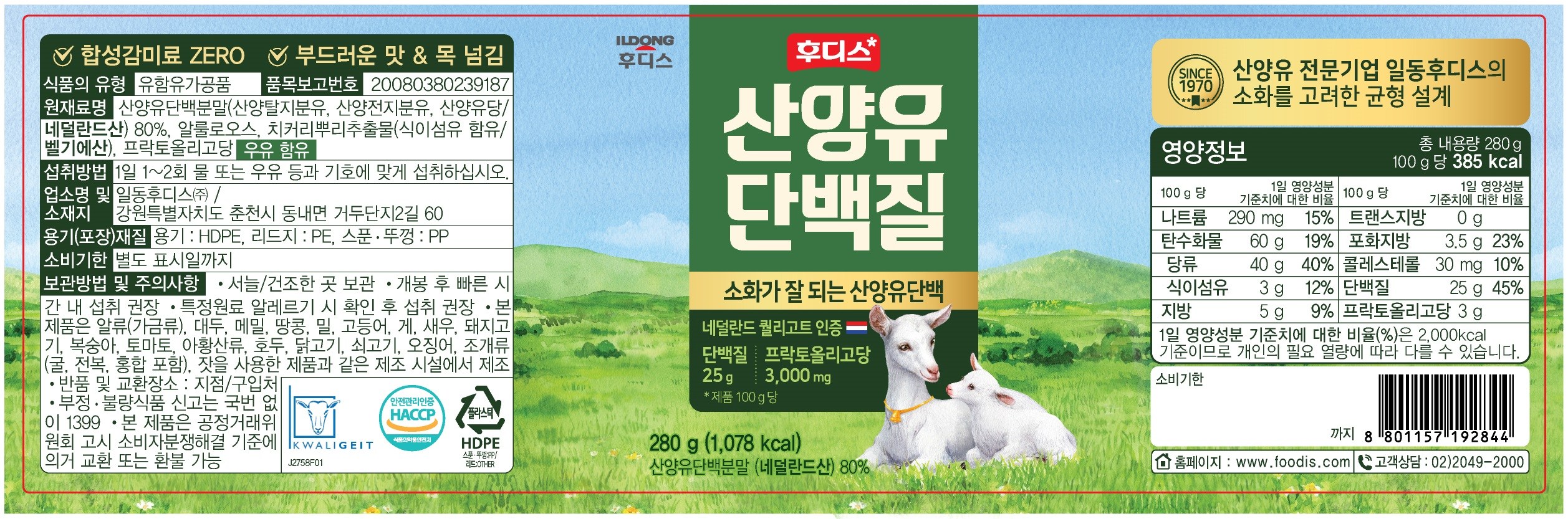 | 제품명 | 후디스 산양유 단백질 | 식품의 유형 | 컨텐츠 참조 |