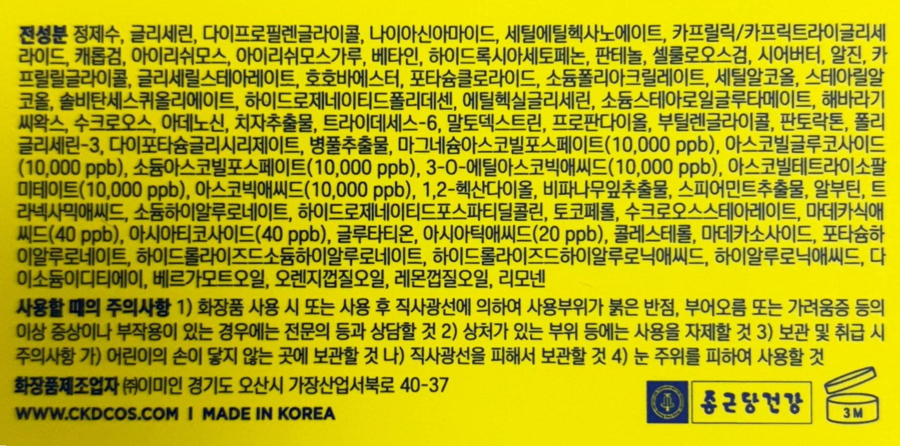 | 화장품제조업자, 화장품책임판매업자 및 맞춤형화장품판매업자 | 컨텐츠 참조 | 제조국 | 대한민국 |