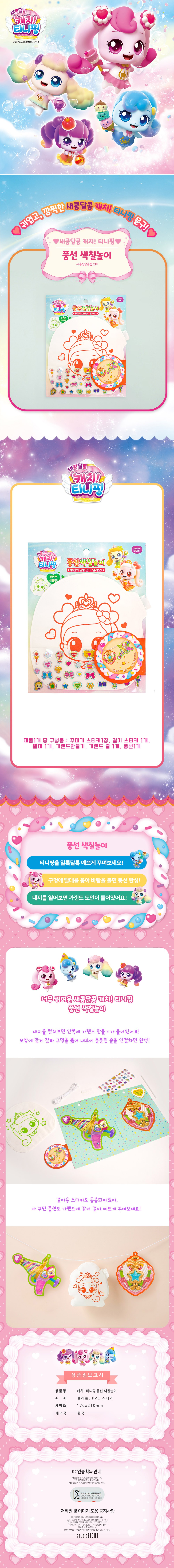 | 품명 및 모델명 | 캐치티니핑 새콤달콤 풍선색칠놀이 | KC 인증정보 | 컬러룬: CB067H088-2001, 스티커: CB063H030-20003 |