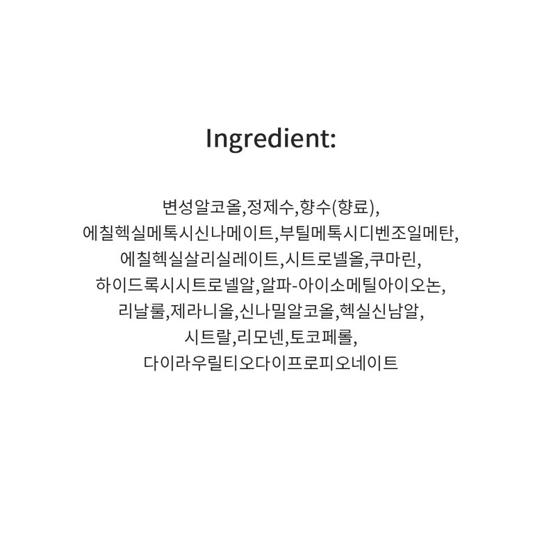 세븐 포인트 방법: 귀 뒤쪽, 손목, 허벅지, 목, 배, 무릎, 발꿈치에 가볍게 찍어 도포해 주세요. 가벼운 마찰로 인해 향 분자가 손상되지는 않으나, 온도가 너무 높으면 향이 빠르게 휘발될 수 있으니 사용 시 힘을 주어 문지르지 마세요. 스프레이 방법: 옷을 입기 전 몸에서 10~20cm 거리를 두고 분사하세요. 스프레이 범위는 넓을수록 좋으며, 분사한 곳에 약 10분간 머물거나 향수를 광범위하게 분사한 뒤 천천히 걸으시기 바랍니다. 이렇게 하면 미스트가 몸에 균일하게 떨어져 은은한 향기를 남길 수 있습니다.