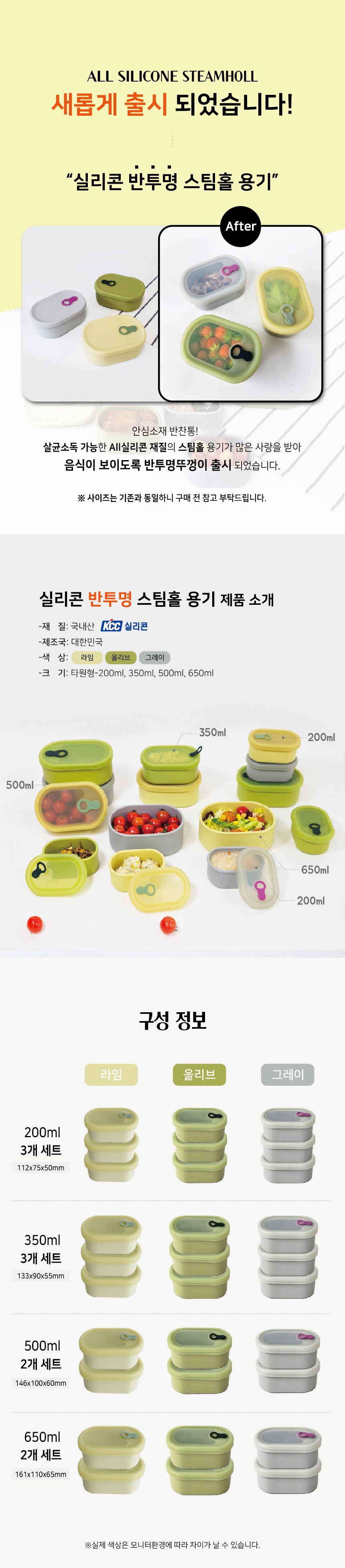 | 품명 및 모델명 | 실리콘 반투명 스팀홀용기 | 재질 | 실리콘(-40°C~250°C) |