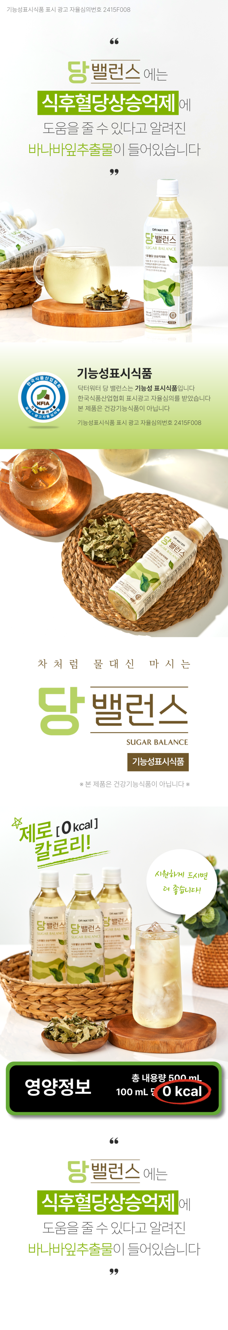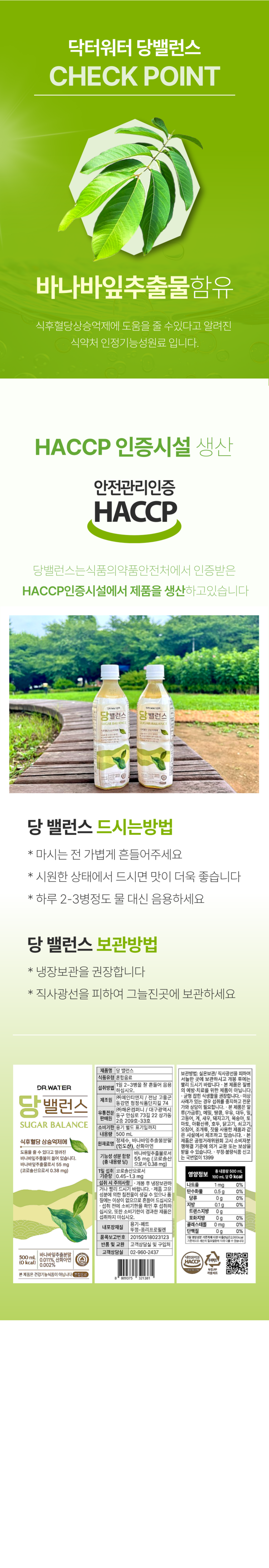 | 포장단위별 내용물의 용량(중량), 수량 | 1박스 (500ml x 20병) | 원재료명 및 함량 | 정제수, 바나바잎추출물(바나바잎:인도산), 산화아연 |