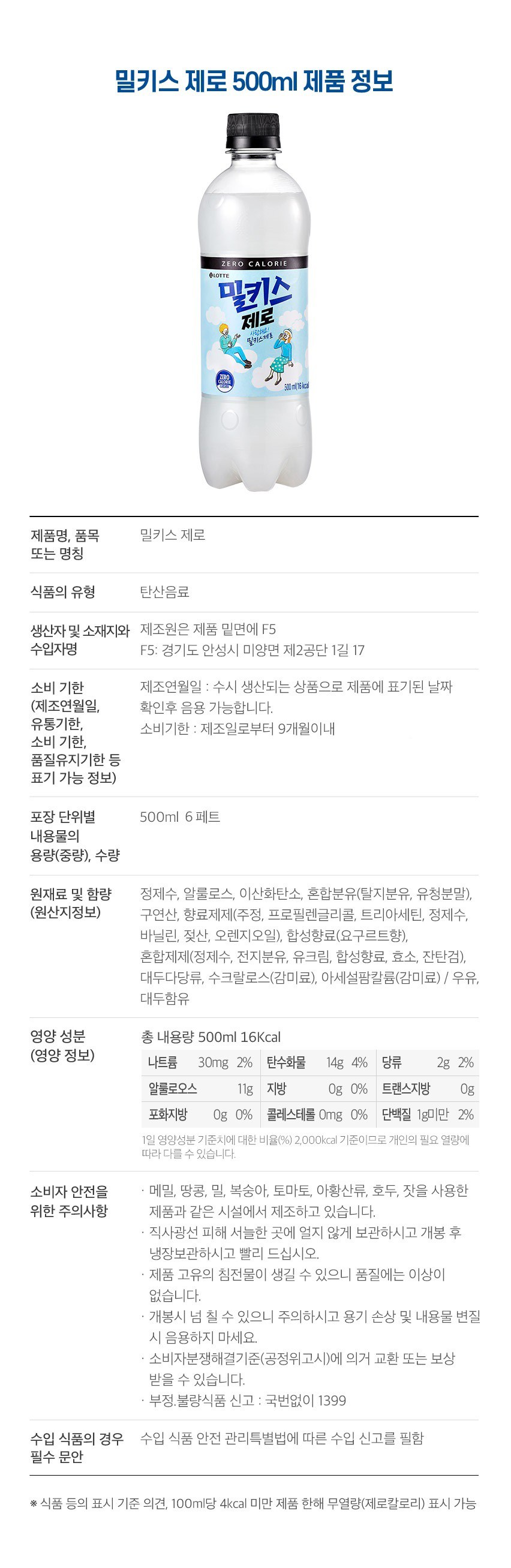 | 제품명 | 밀키스 제로 | 식품의 유형 | 컨텐츠 참조 |