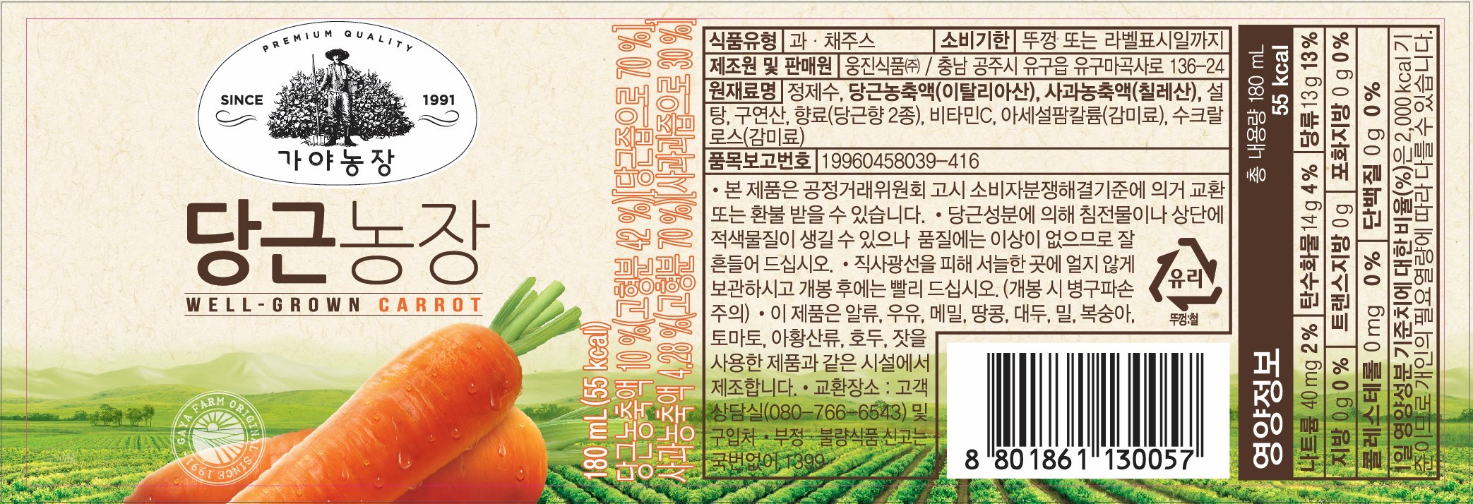 | 제품명 | 가야농장 당근농장 | 식품의 유형 | 과채주스 |