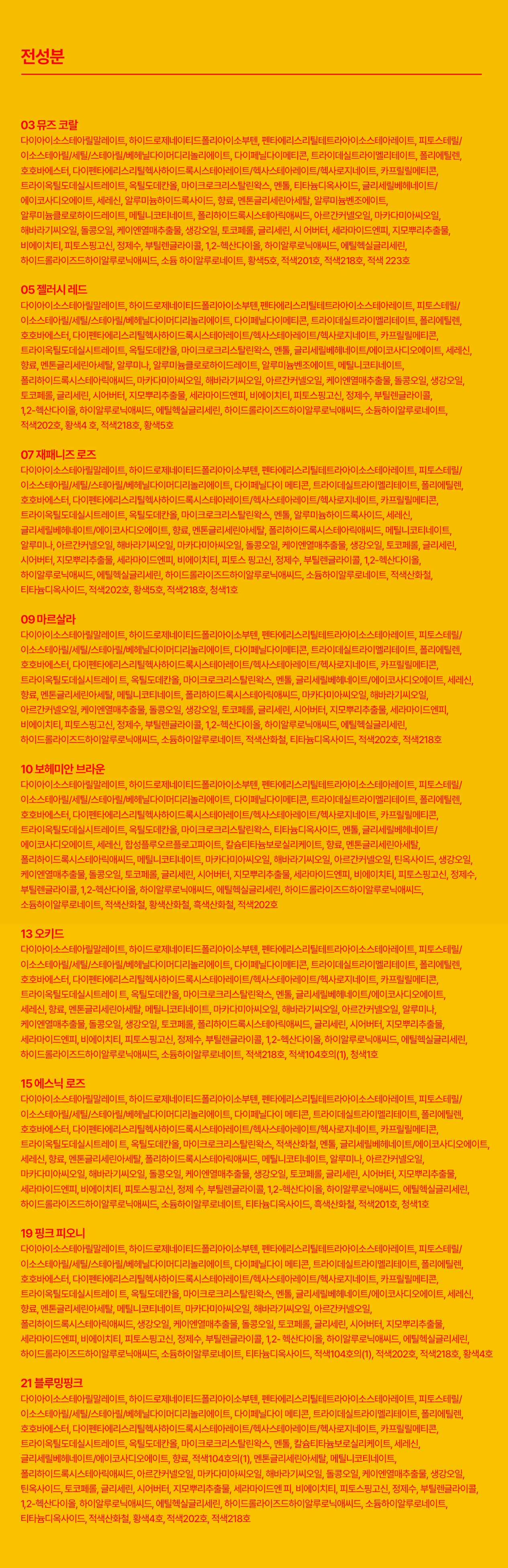 | 화장품제조업자, 화장품책임판매업자 및 맞춤형화장품판매업자 | 컨텐츠 참조 | 제조국 | 컨텐츠 참조 |