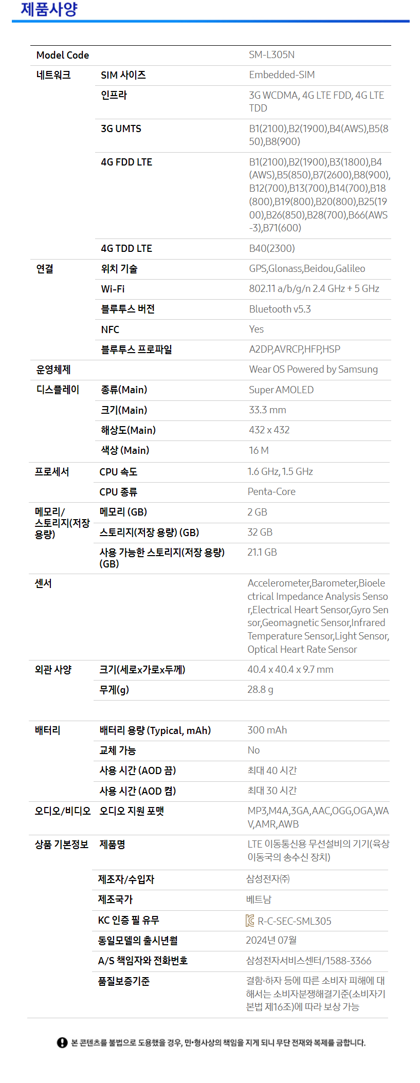 - 모델명/품번: SM-L305N