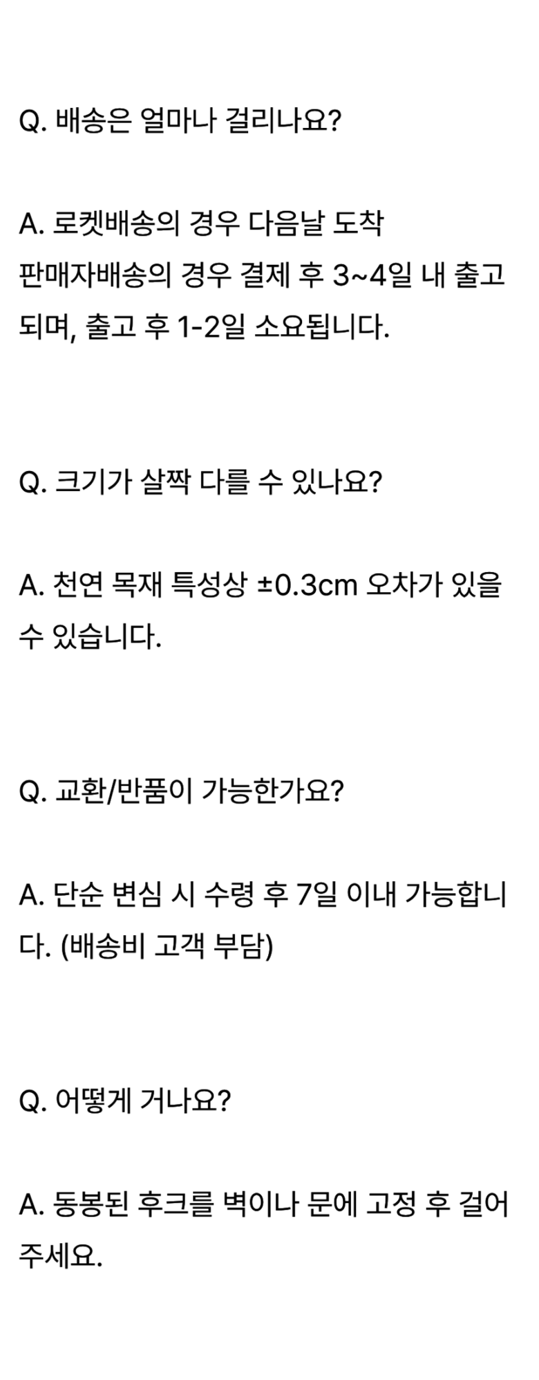 - ㆍ모니터 해상도의 차이로 인해 색상이나 이미지가 실제와 달라, 고객이 단순 변심으로 교환/반품을 무료로 요청하는 경우