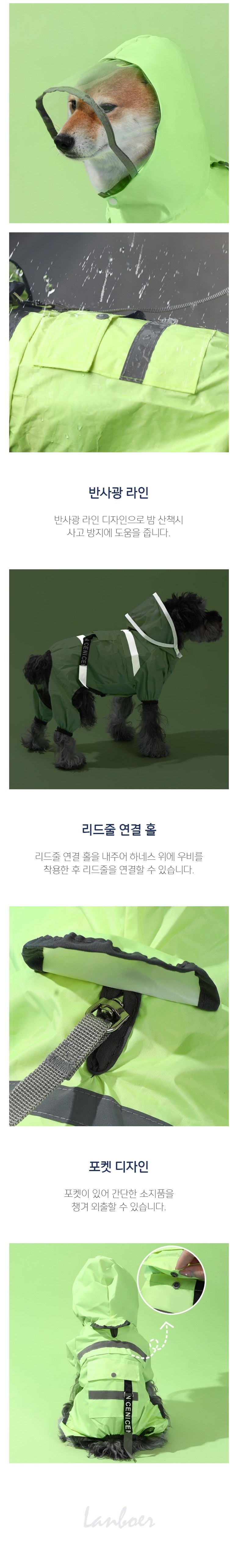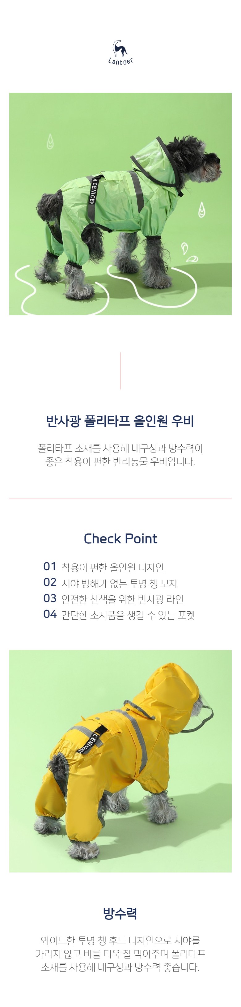 | 품명 및 모델명 | 랜보어 반려동물 반사광 폴리타프 올인원 우비 | 인증/허가 사항 | 해당없음 |