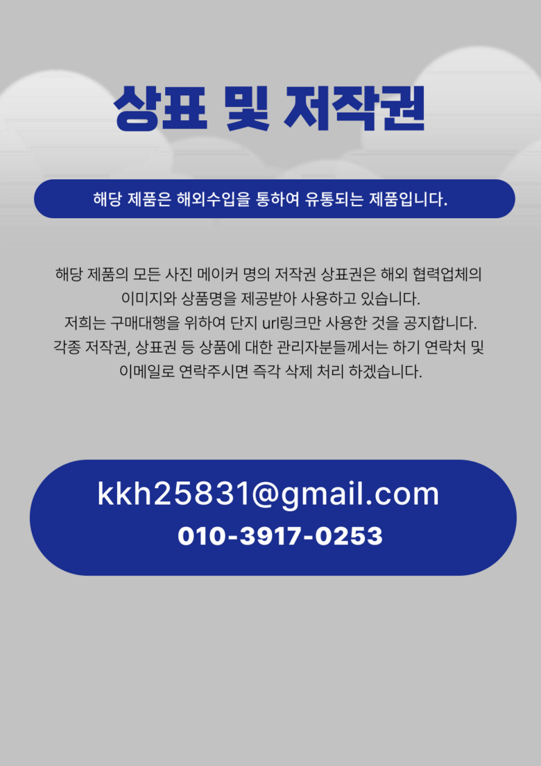 해외업체가 등록한 상품에 대해서는 법적 책임을 지지 않습니 다. 상품에 오류가 있을 경우, 상품문의에 남겨주시면 신속히 확인/처리 하도록 하겠습니다.