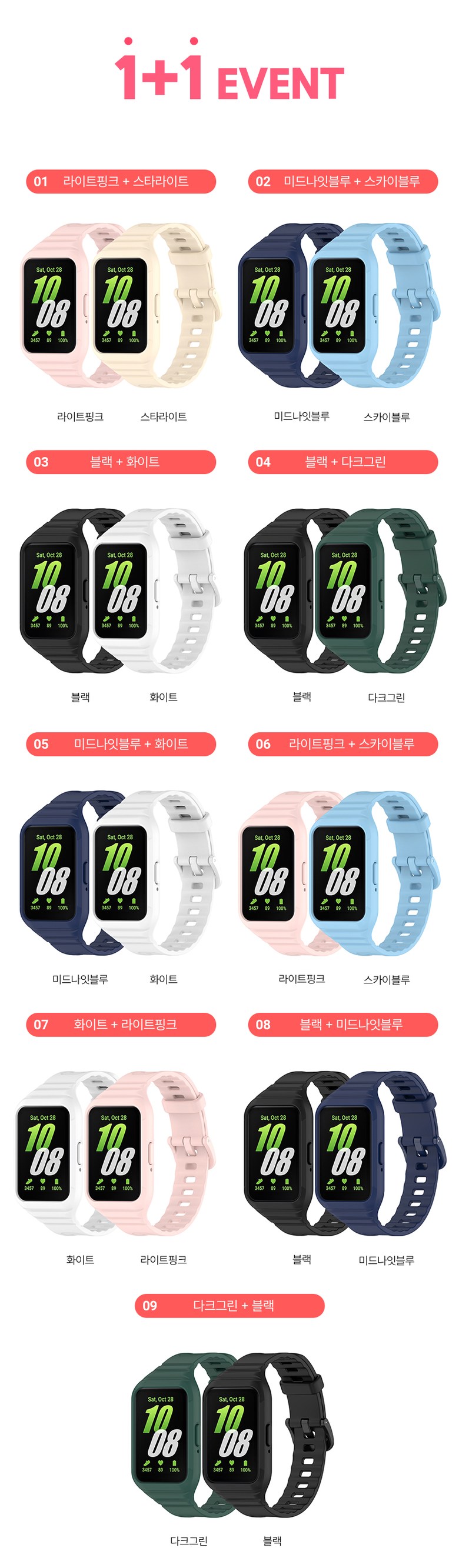 | 품명 및 모델명 | 1+1 엔터콘 갤럭시핏3 실리콘 케이스 일체형 스트랩 스포츠 밴드 루프 시계줄 | 인증/허가 사항 | 해당사항 없음 |