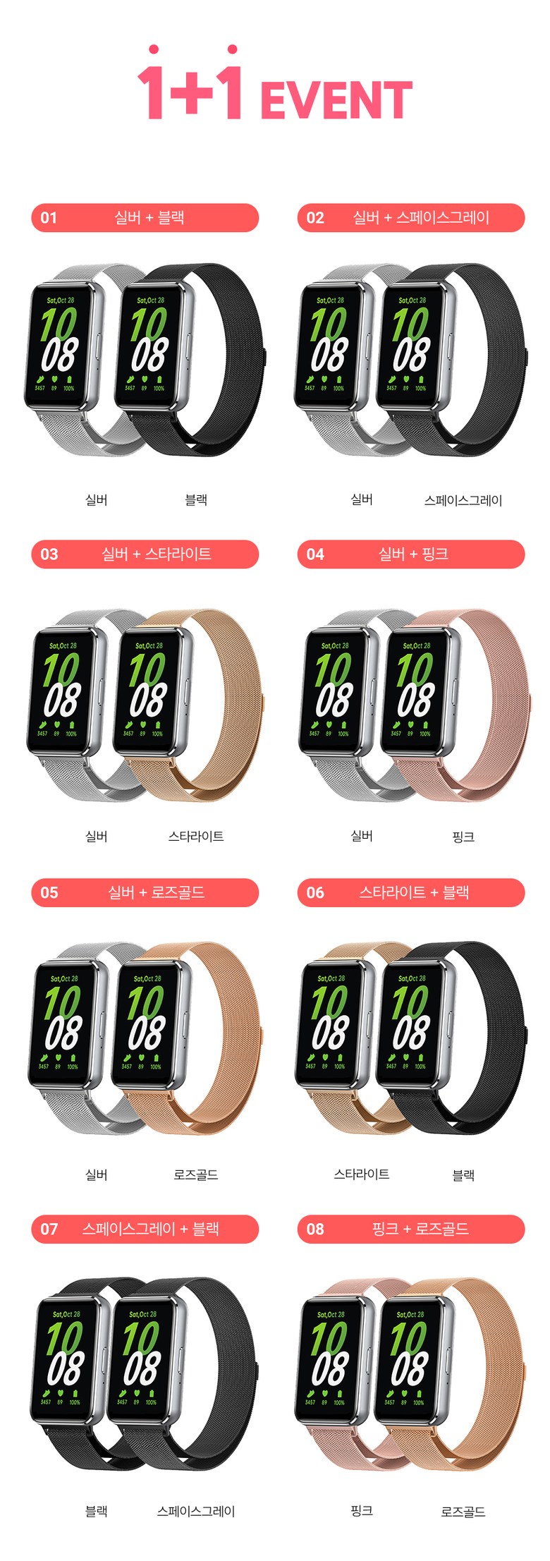 | 품명 및 모델명 | 1+1 엔터콘 갤럭시핏3 스트랩 도트 투톤 실리콘 스포츠 밴드 루프 시계줄 | 인증/허가 사항 | 해당사항 없음 |