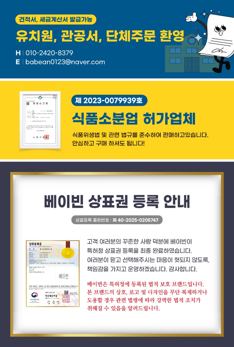 상호/대표자 | 베이빈 / 안홍미 | 사업장 소재지 | 서울특별시 노원구 월계로 370 (월계동) 4층 407호, 413호 |
