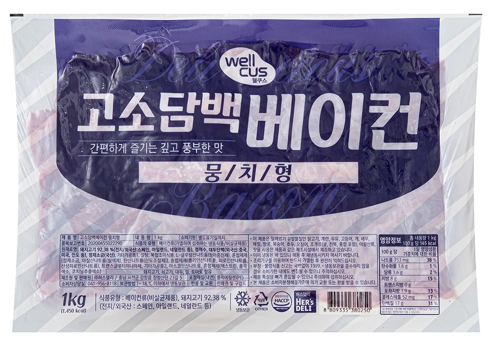바삭하게 구우면 진한 고소함을 선사하는 베이컨이에요. 담백해서 여러 요리에 두루 활용하기 좋은데요. 파스타나 리소토를 만들 때 활용해도 좋고요. 그대로 굽기만 해 밥반찬으로 즐겨도 훌륭하답니다.