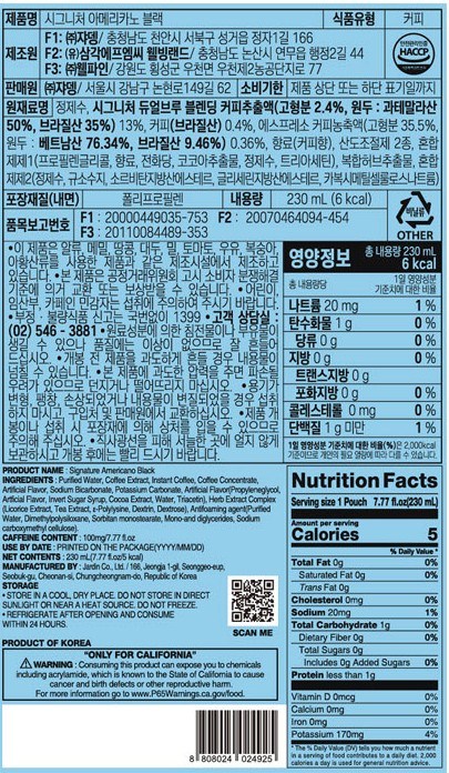 | 포장단위별 내용물의 용량(중량), 수량 | 230ml, 50개 | 원재료명 및 함량 | 컨텐츠 참조 |