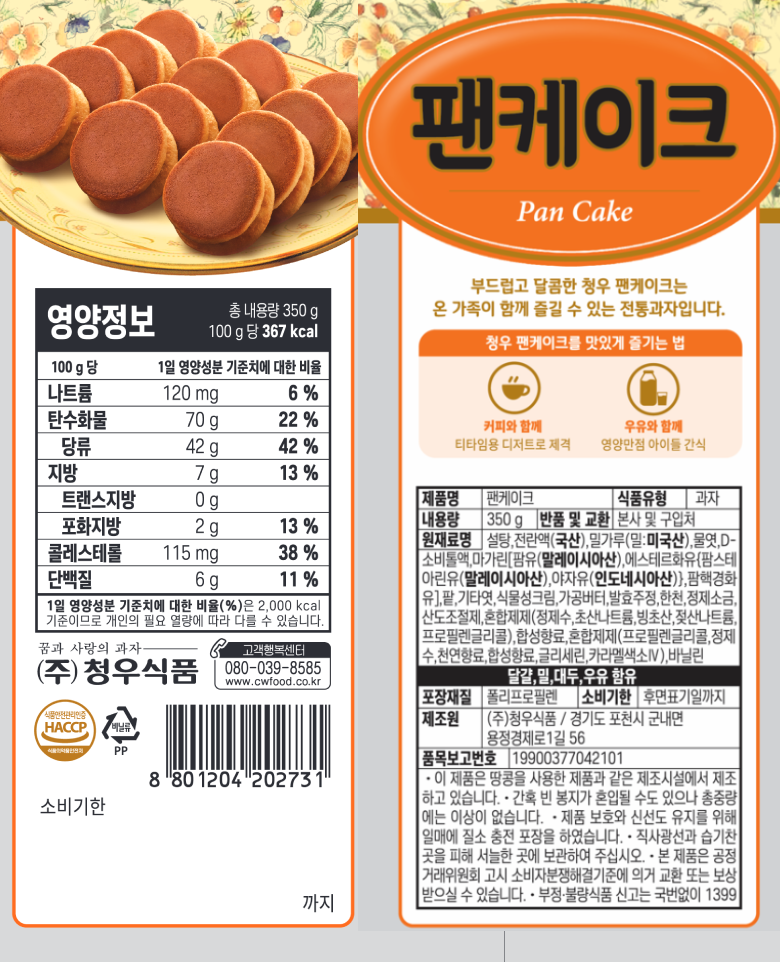 | 제품명 | 팬케익 | 식품의 유형 | 컨텐츠 참조 |