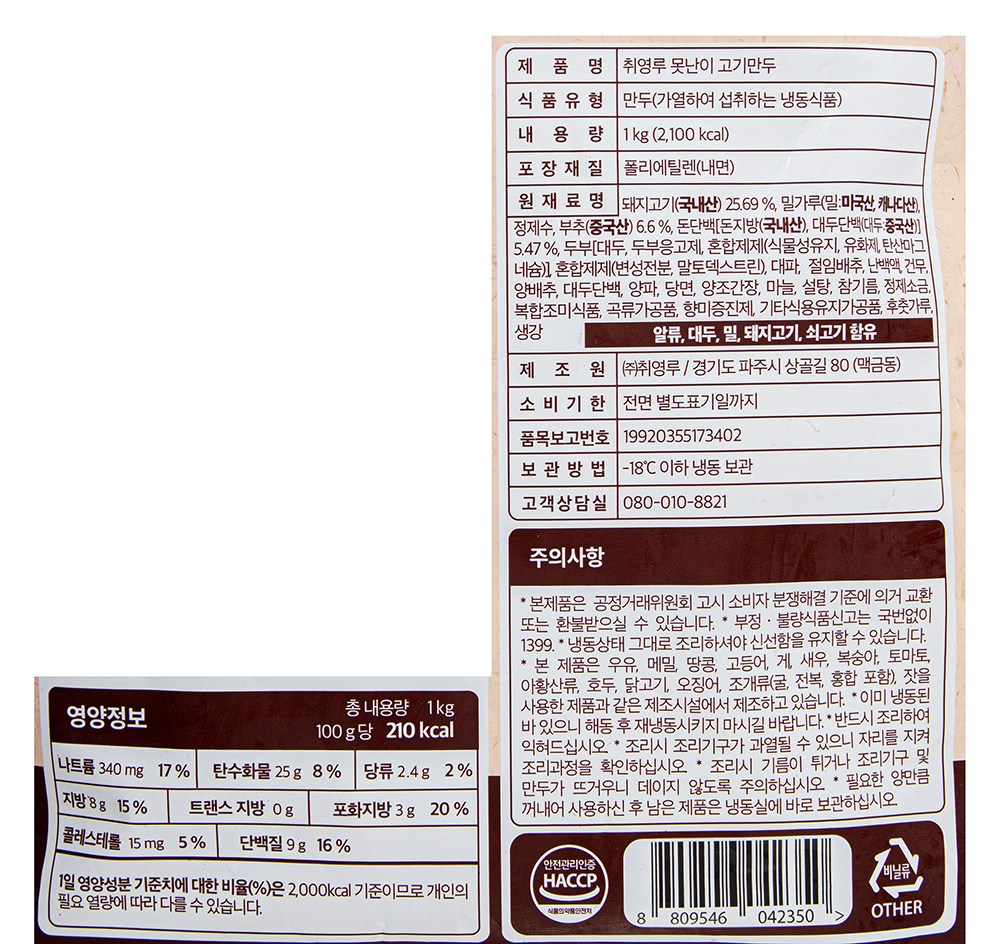 | 포장단위별 내용물의 용량(중량), 수량 | 1kg x 1개입 x 2개 | 원재료명 및 함량 | 컨텐츠 참조 |